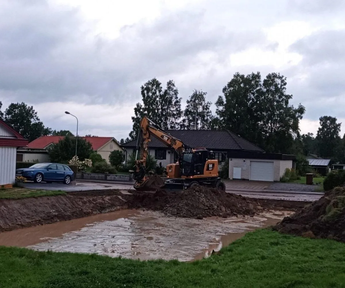 Professionellt schaktarbete för grundläggning, dränering och markförberedelser.